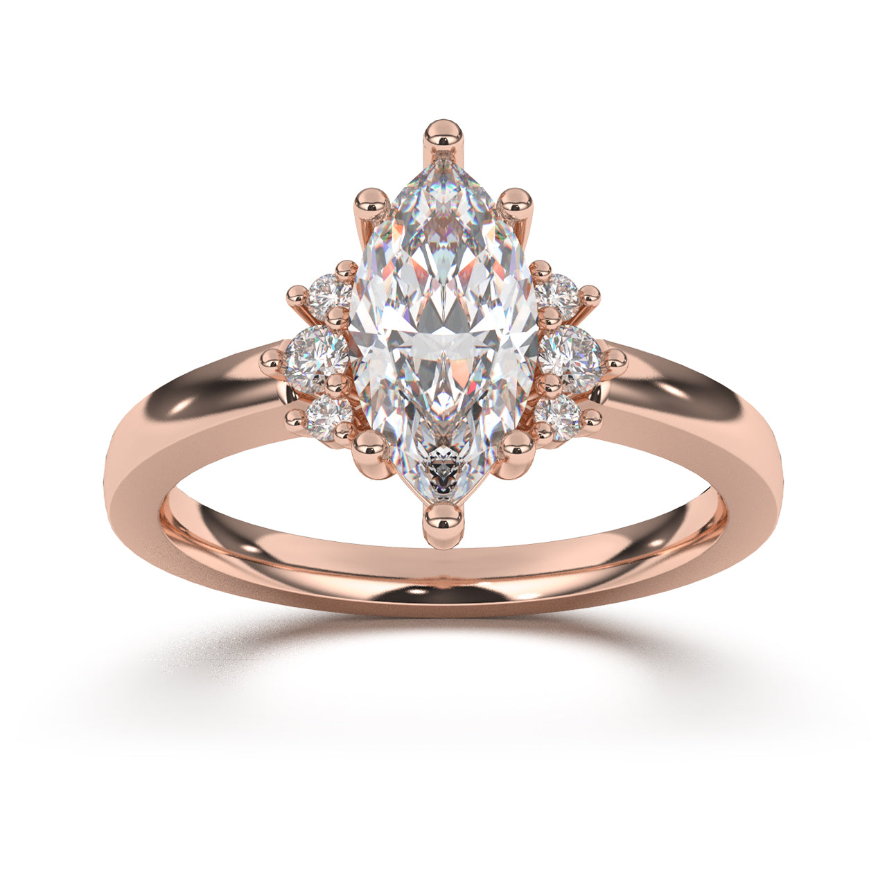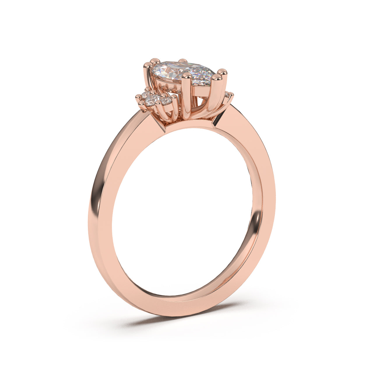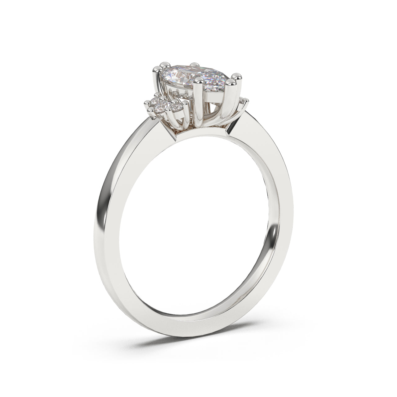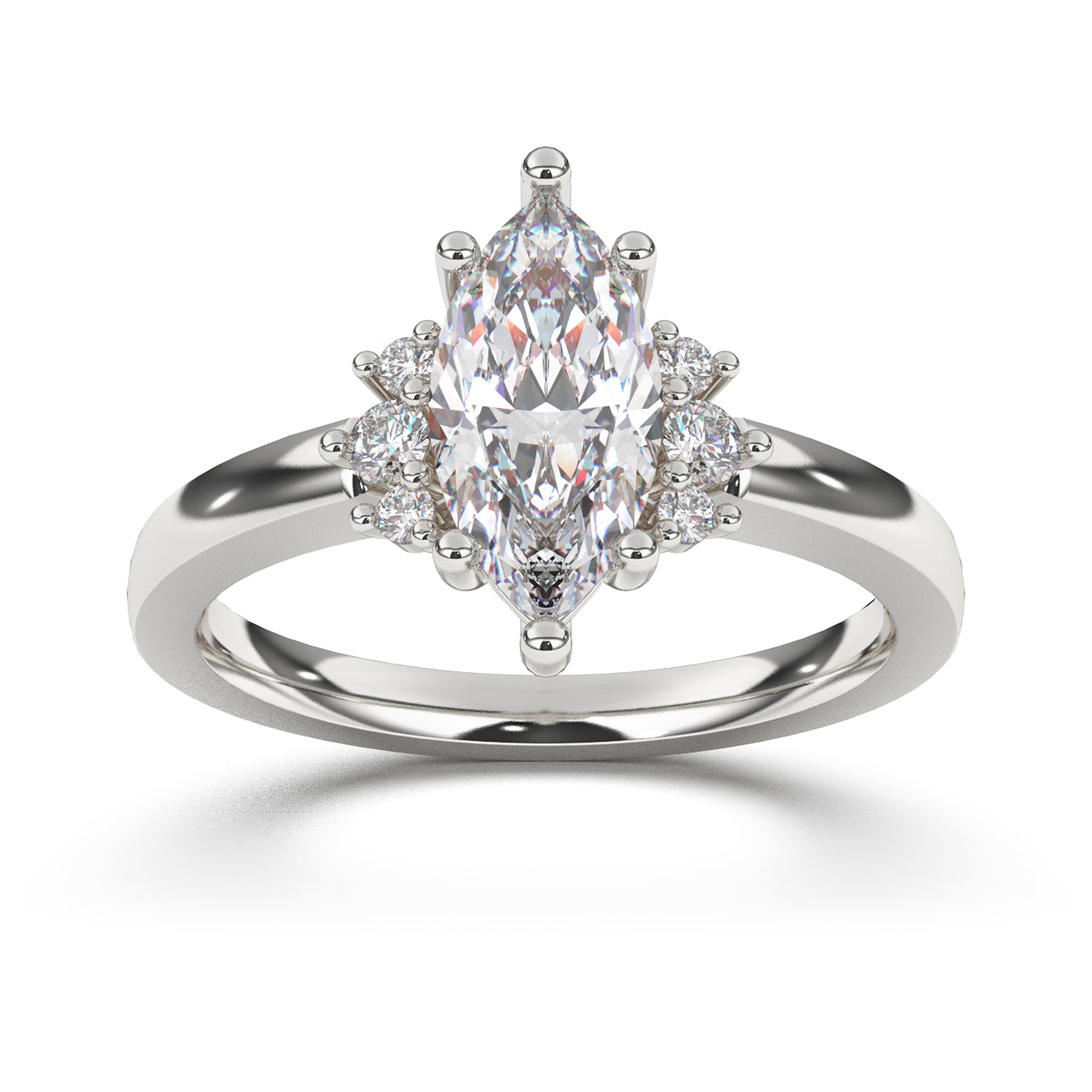 El anillo de compromiso Lisboa es una expresión de refinamiento y detalle. Tres gemas adicionales a cada lado agregan profundidad y brillo a la composición. La banda lisa subraya la delicadeza del ensamble, haciendo de este anillo una elección perfecta para aquellos que valoran la sofisticación y un toque de brillantez.