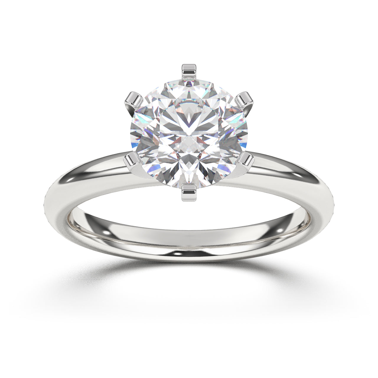 El anillo de compromiso Madrid personifica la elegancia clásica con su diseño puro y atemporal. La banda media caña sostiene de manera segura la gema con una montura de seis uñas, permitiendo una exhibición completa del brillo y la claridad de la gema. Este diseño tradicional es ideal para quienes valoran la simplicidad sofisticada y buscan diseño perdurable.