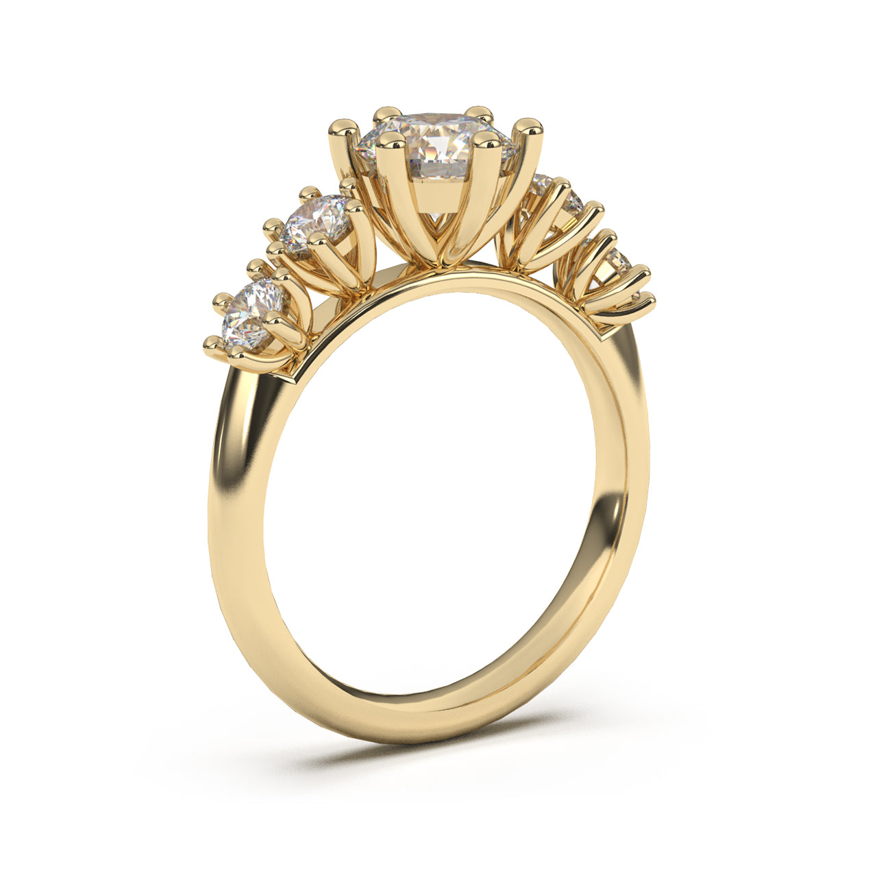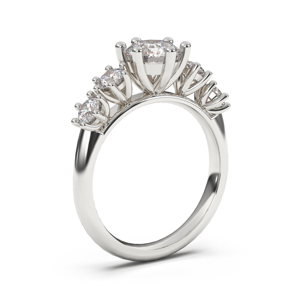 El anillo de compromiso Singapur captura la esencia de la innovación y la belleza con un diseño vanguardista y elegante. Este anillo de cinco gemas destaca por su gema central espléndida, flanqueada por dos gemas a cada lado, que juntos crean un efecto visual impactante. Perfecto para quienes valoran la originalidad y el estilo contemporáneo, el anillo Singapur es una expresión moderna y audaz, diseñado para captar la atención.